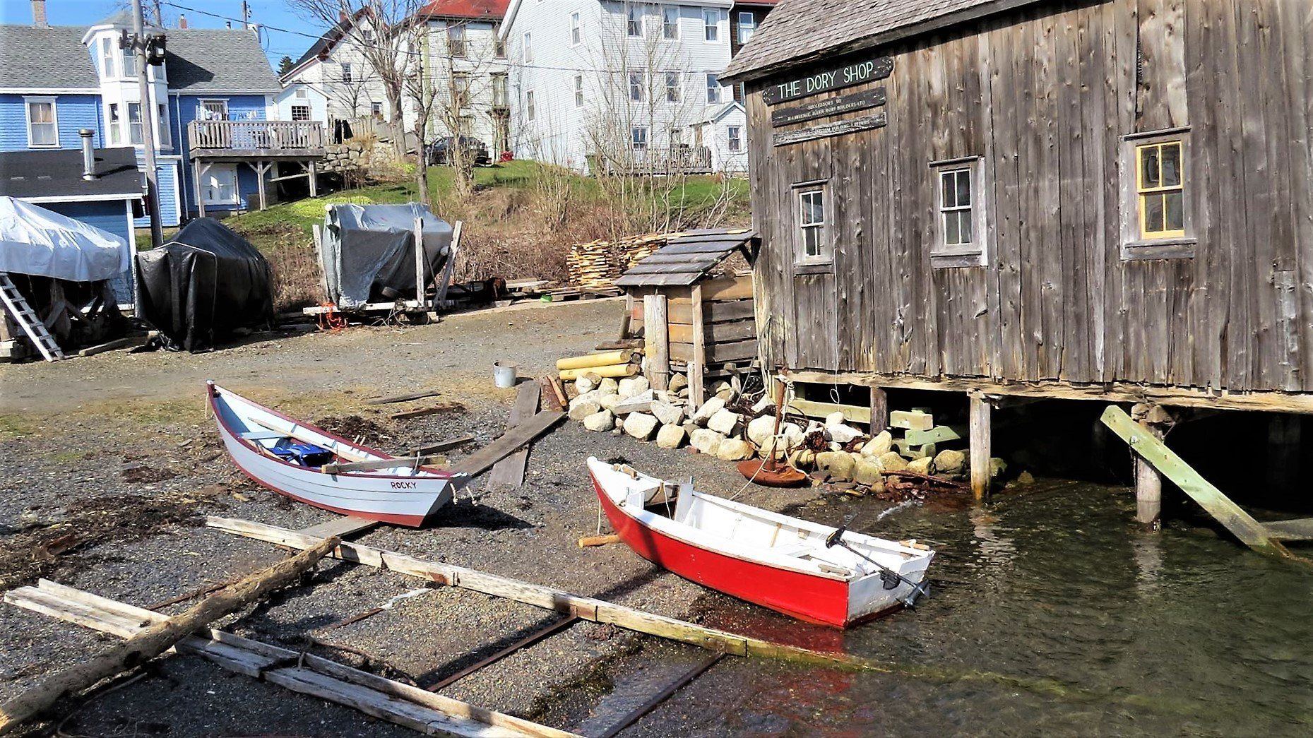 - A traditional dory building shop.